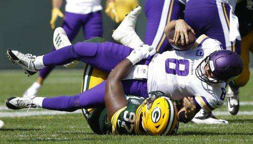 Green Bay Packers' Kenny Clark sacks Minnesota Vikings' Kirk Cousins during the second half of an NFL football game Sunday, Sept. 16, 2018, in Green Bay, Wis. (AP Photo/Jeffrey Phelps) The Associated Press