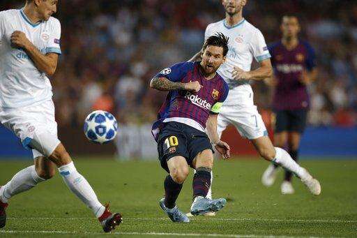 Messi started the Champions League in brilliant fashion Tuesday night, setting a record with his eighth hat trick in the competition to lead Barcelona to a 4-0 rout of PSV Eindhoven.