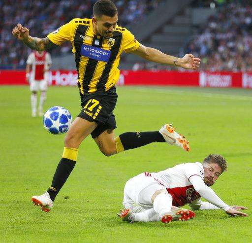 AEK defended in numbers and looked dangerous on the break in the first half against a makeshift Ajax defense that saw midfielder Frenkie de Jong replacing injured captain Matthijs de Ligt at center back alongside Daley Blind. But the Greek champion was outplayed after the break and rarely threatened.