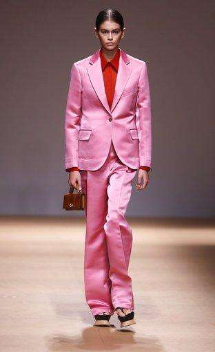 Womenswear took some cues from men's dressing: tuxedo details on jackets and trousers, men's shirts combined with ultra-feminine skirts. And Scervino sent men down the runway to illustrate the symmetries.