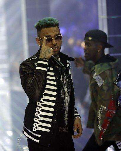 Singer Chris Brown performs during Philipp Plein's women's 2019 Spring-Summer collection, unveiled during the Fashion Week in Milan, Italy, Friday, Sept. 21, 2018. (AP Photo/Luca Bruno)