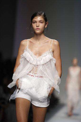 Models wear creations as part of the Scervino women's 2019 Spring-Summer collection, unveiled during the Fashion Week in Milan, Italy, Saturday, Sept. 22, 2018. (AP Photo/Luca Bruno)