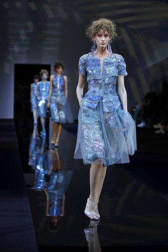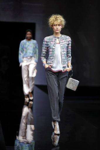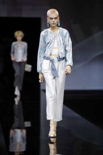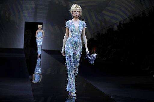 A model wears a creation as part of the Giorgio Armani women's 2019 Spring-Summer collection, unveiled during the Fashion Week in Milan, Italy, Sunday, Sept. 23, 2018. (AP Photo/Luca Bruno) The Associated Press