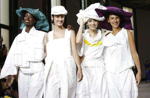 Models in giant hats twisted the rims of the headwear as they smiled and walked by.