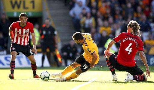 WOLVERHAMPTON, England (AP) - Ivan Cavaleiro scored with his first touch in the English Premier League to help Wolverhampton to a 2-0 victory over Southampton on Saturday.