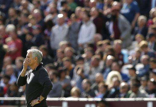 Manchester United manager Jose Mourinho watches the English Premier League soccer match between West Ham United and Manchester United at London Stadium in London in London, England, Saturday, Sept. 29, 2018. (AP Photo/Tim Ireland) The Associated Press