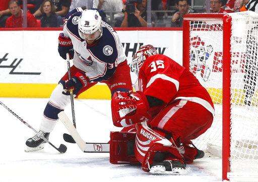 Atkinson and Josh Anderson gave Columbus the lead over the first two periods. Rookie Dennis Cholowski and Tyler Bertuzzi pulled the Red Wings into a tie with goals in the second period.