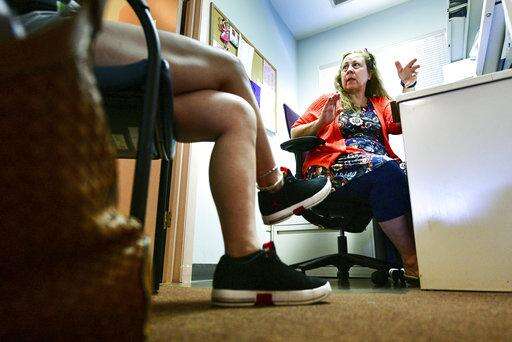 In this Sept. 5, 2018 photo, RN Janet Hill works with a client at the Human Service Center in Peoria, Ill. The Human Service Center specializes in the intake and assessment of individuals with drug and alcohol abuse, offering psychiatric assessment and medication treatment services for those battling opioid and other addictions.(Fred Zwicky/Journal Star via AP) The Associated Press