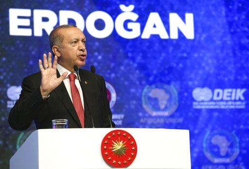 Erdogan's statement renews a threat to expand Turkey's military operations into areas east of the Euphrates River held by U.S.-backed Syrian Kurds.