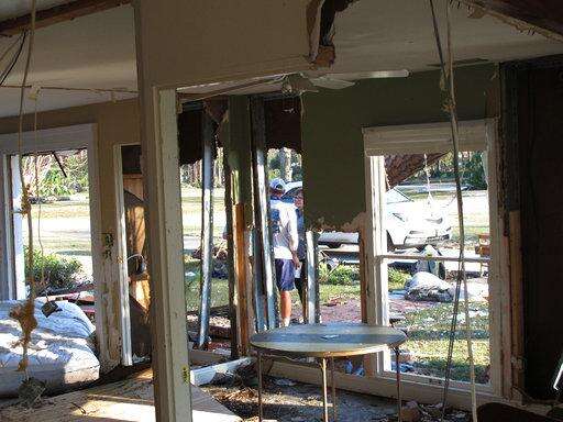 "It busted through the windows, and once it did that, it floats the furniture up," said Rex Buzzett, a former city commissioner in this Gulf Coast town of 5,000. "The furniture rolls around in there like being in a washing machine and bangs out everywhere, trying to get out. The results are there behind me."