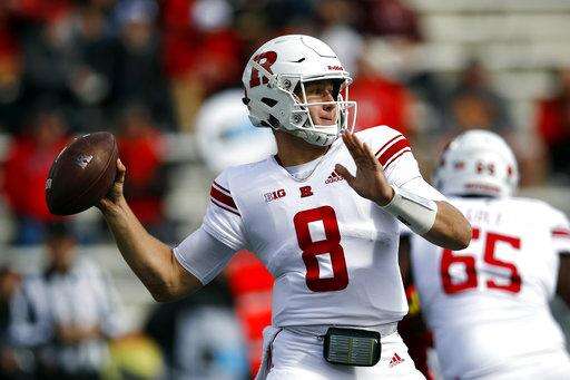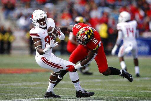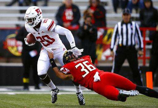 COLLEGE PARK, Md. (AP) - Kasim Hill threw three touchdown passes, Ty Johnson ran for 132 yards and Maryland had five interceptions against woeful Rutgers in a 34-7 victory Saturday.