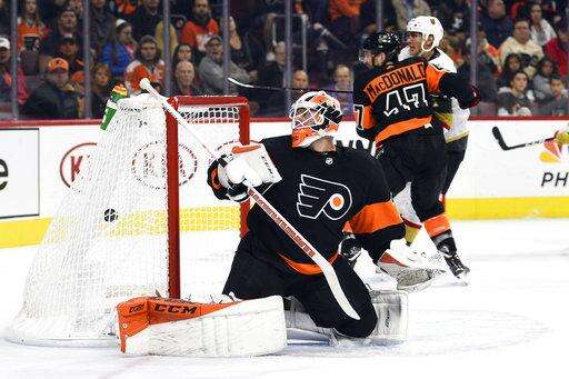 Laughton was banged up and forward Oskar Lindblom also hit the locker room in the third after Golden Knights defenseman Brayden McNabb plowed him into the glass. The Flyers were already without two of their top nine forwards - Nolan Patrick and James van Riemsdyk. Patrick could miss up to 10 days after he took a stick to the face against Ottawa. Van Riemsdyk, who signed a $35 million, five-year contract in the summer, is out another month because an injury suffered when was hit with a shot in the second game of the season.