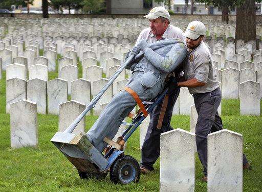 A bronze statue of a rebel soldier was toppled and decapitated on Aug. 22, 2017, at Camp Chase Confederate Cemetery in Columbus, Ohio. Two days later, the VA contracted with the Westmoreland Protection Agency, based in Sunrise, Florida, to provide unarmed security guards at Camp Chase and two other cemeteries - North Alton Confederate Cemetery in Alton, Illinois, and Woodlawn National Cemetery in Elmira, New York. The 30-day contract cost $91,357, according to the documents.