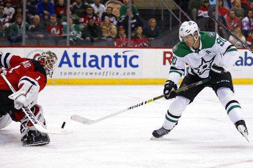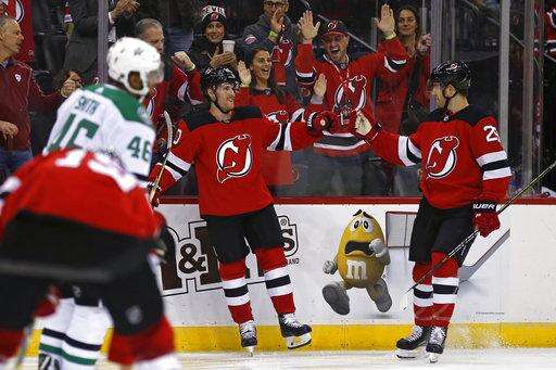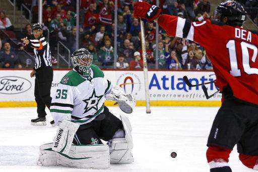 NOTES: The Devils have used the same lineup all four games. F Drew Stafford and Ds Steven Santini and Eric Gryba have not played. ... Taylor Hall cost the Devils a two-man advantage in the first period when he was called for delay of call for deliberately shooting the puck into his own bench to stop play. ... Jamie Benn of Dallas and Miles Wood of New Jersey exchanged haymakers in a big third-period fight.
