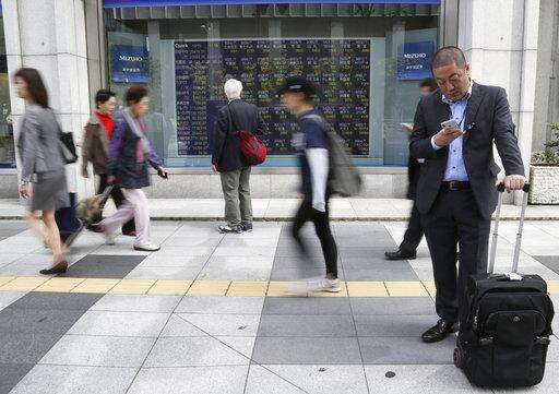 KEEPING SCORE: Tokyo's Nikkei 225 index fell 0.8 percent to 22,487.21 and India's Sensex lost 1.3 percent to 34,338.69. Hong Kong's Hang Seng picked up 0.5 percent to 25,571.54 and the Shanghai Composite index added 0.3 percent to 2,493.31. Sydney's S&P-ASX 200 shed 0.2 percent to 5,931.40. Seoul's Kospi added 0.2 percent to 2,153.14. Benchmarks in Taiwan, New Zealand and Southeast Asia declined.