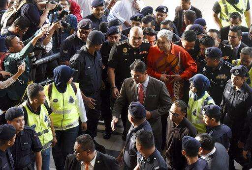 United Malays National Organization's (UMNO) President Ahmad Zahid Hamidi arrives at Kuala Lumpur High Court in Kuala Lumpur, Malaysia, Friday, Oct. 19, 2018. The anti-graft agency said Zahid was detained at its office shortly after he was summoned as part of its probe into abuse of power, criminal breach of trust and money laundering at a welfare group. It said in a statement that Zahid will be taken to court on Friday to face several charges under anti-corruption and anti-money laundering laws. (AP Photo/Yam G-Jun) The Associated Press