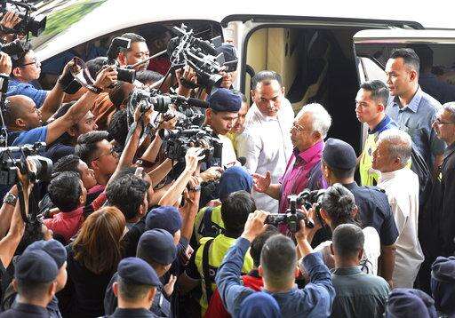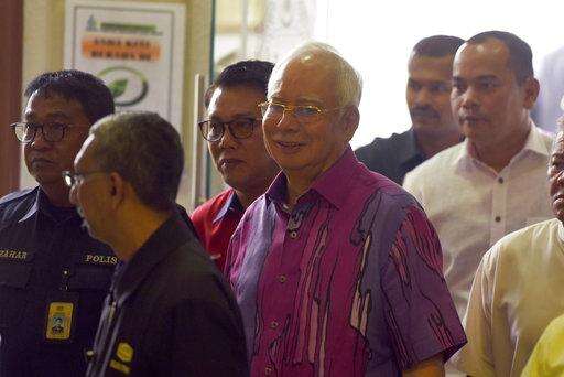 Former Prime Minister Najib Razak leaves Kuala Lumpur High Court in Kuala Lumpur, Malaysia, Friday, Oct. 19, 2018. Najib arrived at high court in support of United Malays National Organization's (UMNO) President Ahmad Zahid Hamidi. Zahid is expected to be charged with abuse of power, criminal breach of trust and money laundering of funds in his family-run welfare group. (AP Photo/Yam G-Jun) The Associated Press
