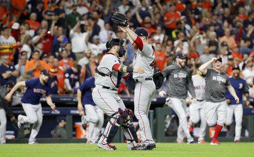 Kimbrel, who's had some shaky outings lately, threw a hitless ninth for his fifth save this postseason. Boston slugger J.D. Martinez homered and star outfielders Mookie Betts and Andrew Benintendi made running catches in the clincher.