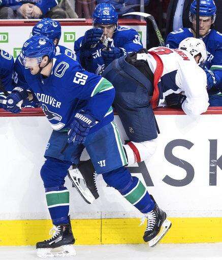 Washington center Nicklas Backstrom recorded his 600th career assist. ... Ovechkin's second goal of the night marked his 233rd on the power play. He is now ninth in NHL history for power-play goals. ... Vancouver's Elias Pettersson joined his teammates for morning skate Monday. The Canucks rookie has missed three games with a concussion and an update on his status is expect on Tuesday.