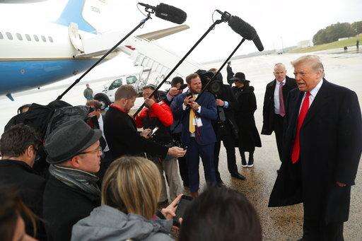Nine days from elections that will determine the control of Congress, Trump stuck to his plans to appear at an agricultural convention and a political rally. Throughout the day, he expressed sorrow, called for justice and bemoaned hate, getting regular updates on the shooting. But he also campaigned for candidates, took shots at favorite Democratic targets House Minority Leader Nancy Pelosi and Sen. Elizabeth Warren and made jokes about his hair.
