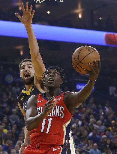 Pelicans: The Pelicans were outrebounded 46-42. ... Elfrid Payton missed his second straight game with a sprained right ankle. ... New Orleans lost each of its previous two games scoring 111 points, against Utah and Denver. ... The Pelicans have lost 28 of 31 overall to Golden State including playoffs. ... New Orleans won 126-120 at Oracle Arena on April 7 to snap a 10-game losing streak on Golden State's home floor.