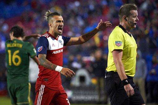 DALLAS (AP) - Diego Valeri scored two goals, the second with Portland a man down, and the Timbers beat FC Dallas 2-1 in a MLS knockout game Wednesday night.