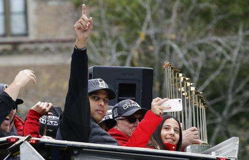 The damage occurred during Wednesday's duck boat ride through Boston, when boisterous fans took to throwing drinks to the players. A team photographer, Jason Varitek's wife and Alex Cora's daughter were among those hit.