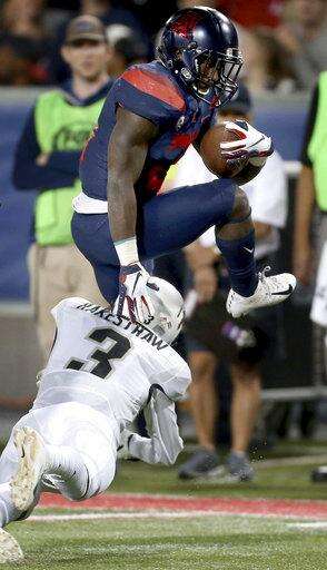 TUCSON, Ariz. (AP) - Khalil Tate threw for career-high 350 yards and five touchdowns after setting an FBS rushing record against Colorado a year ago, lifting Arizona to a 42-34 victory over the Buffaloes Friday night.