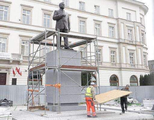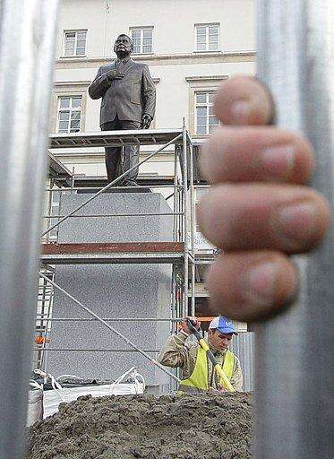 Authorities in Warsaw's local government opposed the statue and its central location. Pro-government provincial authorities were in favor. It's a clash playing out in the courts even as the 7-meter (23-foot) statue went up.
