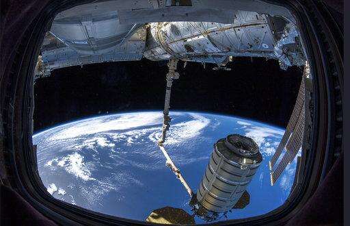 In this image provided by NASA, a commercial shipment arrives at the International Space Station on Monday, Nov. 19, 2018. Astronaut Serena Aunon-Chancellor used the space station’s robot arm to grab Northrop Grumman’s capsule. It’s named after Apollo 16 moonwalker and the first space shuttle commander John Young, who died in January. (Alexander Gerst/European Space Agency, NASA via AP) The Associated Press