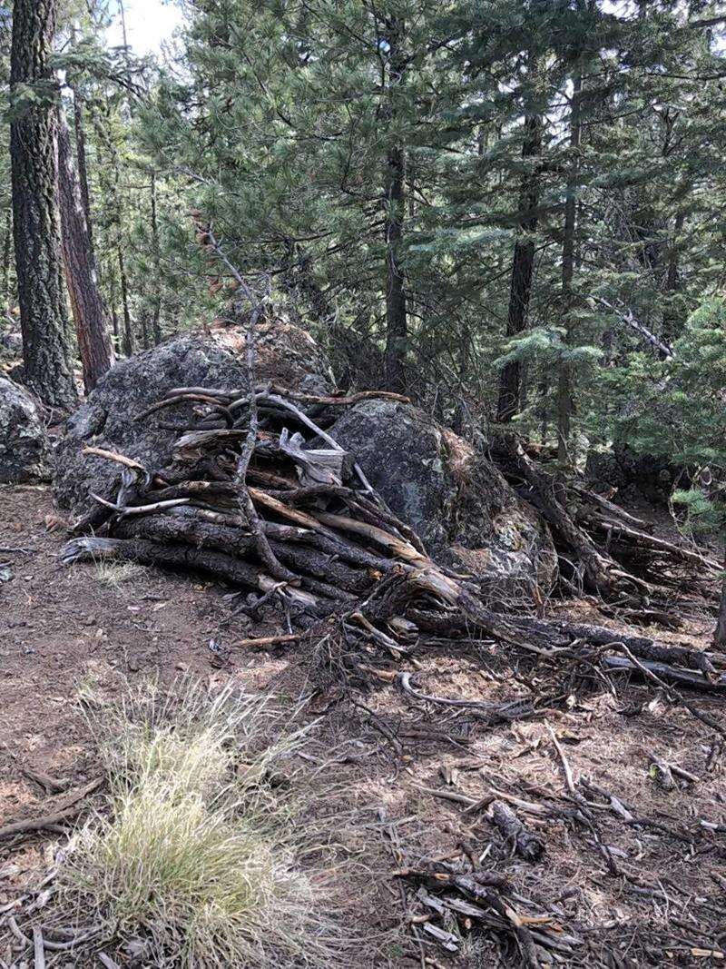 Ken Franzese spent the night in this makeshift shelter after the plane crash May 6. He gathered branches to cover a hiding spot between two rocks. Courtesy Ken Franzese