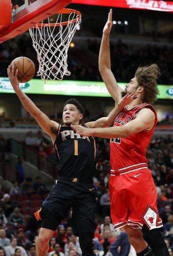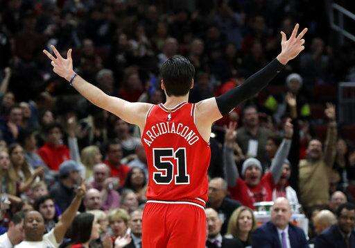 Arcidiacono gave Chicago a spark when he jumped over Phoenix's bench while trying to save a ball from going out of bounds in the first quarter. He landed on a couple of fans in the front row, causing a man to lose some of his beer, but everyone was OK.