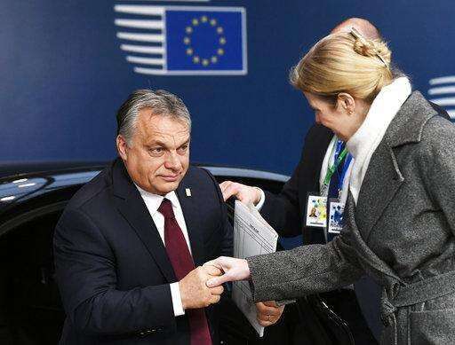 Hungarian Prime Minister Viktor Orban arrives for an EU summit at the Europa building in Brussels, Sunday, Nov. 25, 2018. European Union leaders are gathering to seal an agreement on Britain's departure from the bloc next year, the first time a member country will have left the 28-nation bloc. (Piroschka van de Wouw, Pool Photo via AP) The Associated Press