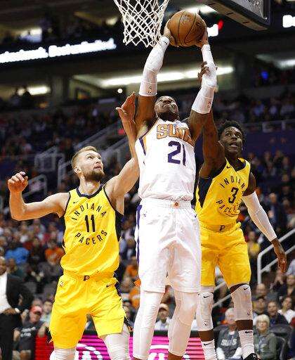 Indiana led by as many as 13 points in the second and third quarters, but Phoenix, with Booker and Ayton on the bench, used a 15-2 run late in the third and early in the fourth to go up 85-81 when Richaun Holmes made one of two free throws with 9:51 to play.