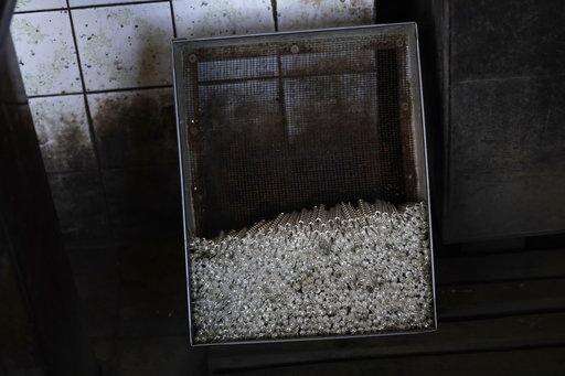 In this picture taken on Wednesday, Nov. 28, 2018, hundreds of small blown glass beads are placed in a box, as part of the manufacturing process for Christmas decorations, in the village of Ponikla, Czech Republic. The small family business in a mountainous village in northern Czech Republic is the last place in the world where traditional Christmas decorations are made from glass beads blown and painted by hand. (AP Photo/Petr David Josek)