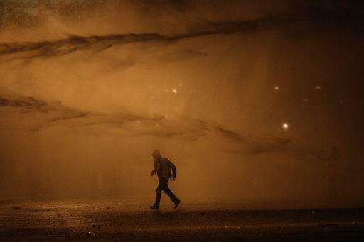 Police responded by firing bursts from a water cannon with backup from riot officers, who used tear gas on the protesters.