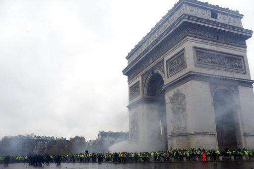 The protesters, called "yellow jackets" for the fluorescent vests they wear, removed barriers protecting the Tomb of the Unknown Soldier from World War I to pose near its eternal flame, just under the Arc.
