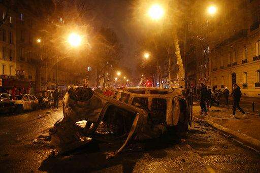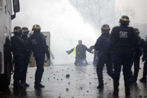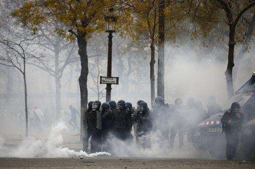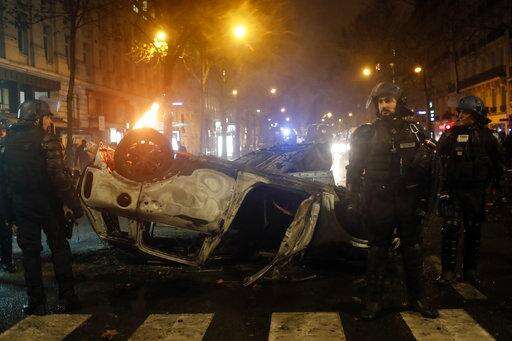 Thousands of French police were deployed to try to contain the violence, which began Saturday morning near the Arc de Triomphe and continued well after dark. Paris police said at least 110 people, including 20 police officers, were injured in the violent protests and 224 others were arrested.