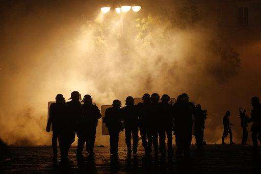 Some demonstrators removed the barriers protecting the Tomb of the Unknown Soldier from World War I under the Arc de Triomphe monument to pose near its eternal flame and sing the national anthem. They were dispersed by police.
