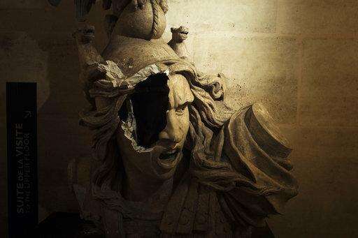 A broken sculpture of Marianne, symbol of the French Repupblic, appears damaged in the gallery inside the Arc de Triomphe during a demonstration Saturday, Dec.1, 2018 in Paris. A French protest against rising taxes and the high cost of living turned into a riot Saturday in Paris as police fired tear gas and water cannon in street battles with activists wearing the fluorescent yellow vests of a new movement. (AP Photo/Kamil Zihnioglu)