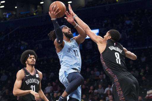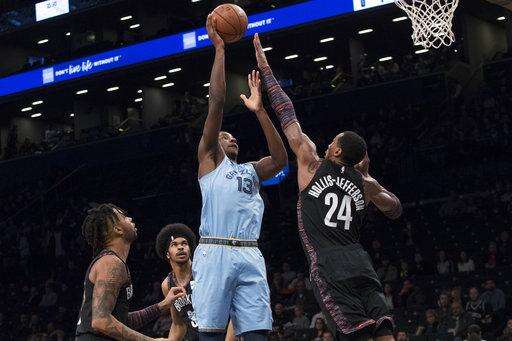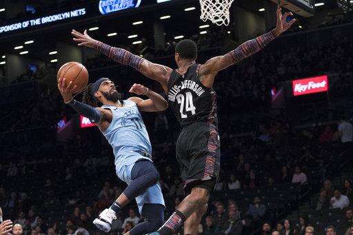 NEW YORK (AP) - Mike Conley scored 13 of Memphis' 14 points in the second overtime period, rookie Jaren Jackson Jr. scored a career-high 36 points and the Grizzlies beat the Brooklyn Nets 131-125 Friday.