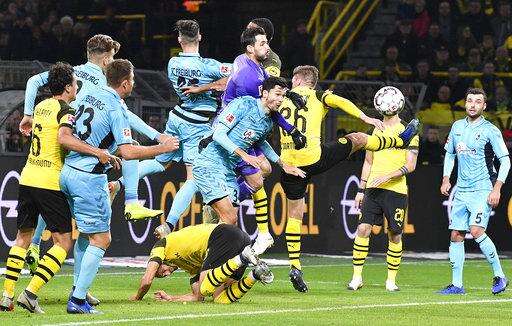 BERLIN (AP) - Borussia Dortmund stretched its Bundesliga lead by beating Freiburg 2-0, and Bayern Munich kept pace at Werder Bremen with a 2-1 win on Saturday.