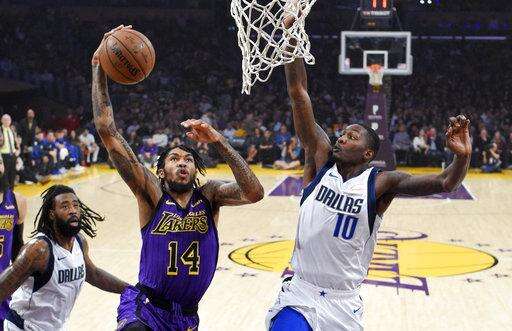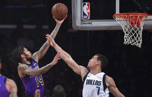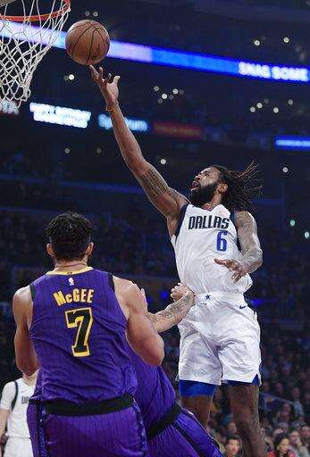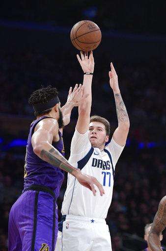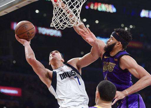 Mavericks: Dennis Smith Jr. scored 13 points and Wesley Matthews added 11. DeAndre Jordan had 12 rebounds and eight points. ... Dallas started 3 of 6 on 3-pointers and then went 3 of 21 from beyond the arc the rest of the half. ... The 27 3-point attempts in the first half marked a season high, surpassing the 26 the Mavs had on Oct. 20 against Minnesota. ... Barnes is averaging 17 points against the Lakers in the first half of games this season.