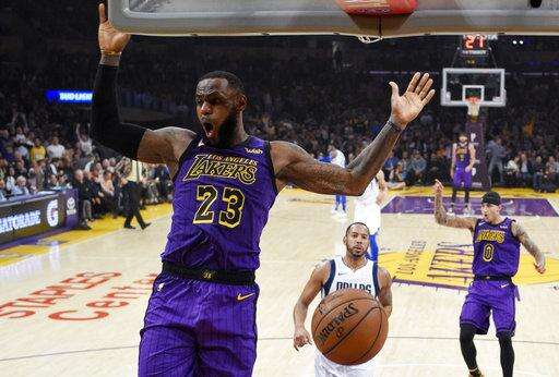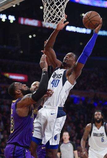 Dallas led 45-30 less than four minutes into the second quarter when the Lakers got back into it with 10 straight points, which included six by James. The Mavericks led 58-53 at halftime.