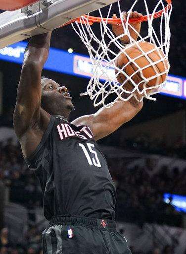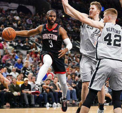 Rockets: Houston is 9-6 after opening the season 1-5. ... Houston's 70 points in the first half tied its second most in any half. The Rockets scored 76 against Indiana on Nov. 11 and 70 against Detroit on Nov. 21. ... Paul has missed five games this season, all of which Houston lost. ... James Ennis was assessed a technical foul after screaming at an official after he was whistled for a pushing foul with 7:38 remaining in the third quarter.