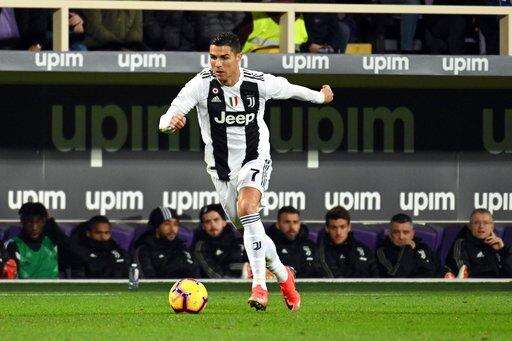 Fiorentina midfielder Cristiano Ronaldo runs with the ball during the Italian Serie A soccer match between Fiorentina and Juventus at the Artemio Franchi stadium in Florence, Italy, Saturday, Dec. 1, 2018. (Claudio Giovannini/ANSA via AP) The Associated Press