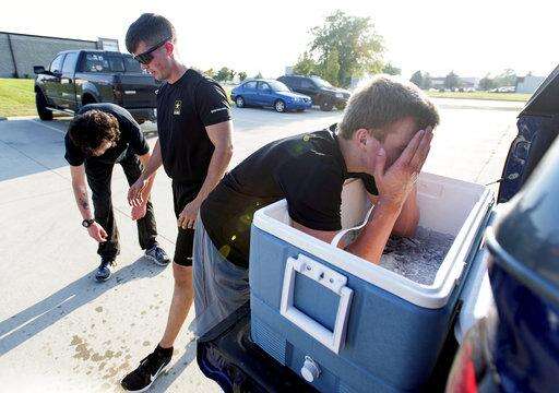 On a recent Thursday, one of the future soldiers doing physical training is recent grad Michael Cook of Champaign. Crunches, a mile run and push-ups are part of their regimen.
