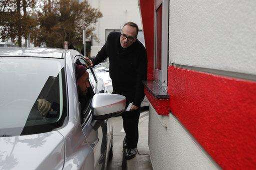 That's why the Roman Catholic priest found himself standing by the drive-thru of a popular Hollywood fast-food joint on a recent windy, rain-swept afternoon buying lunch for everyone who stopped by. The next day he'd be at a gas station in Kentucky, topping off people's tanks. Then it would be on to Arizona where he would - well, he wasn't quite sure what he'd do there, but he'd think of something.