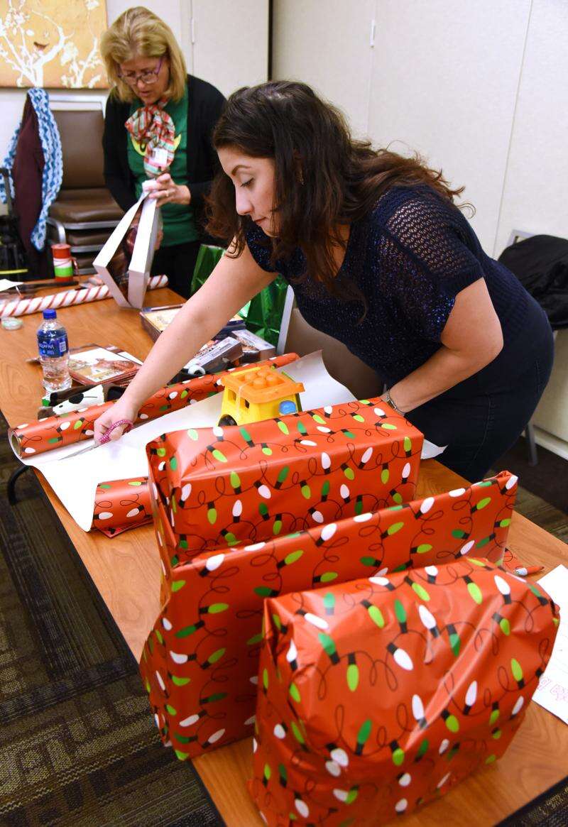 Once they returned to the hospital, the elves worked feverishly to wrap the gifts. Promptly after lunch, as the young patients were settling into their beds for a rest, who should appear, but Santa himself, accompanied by Mrs. Claus, the Grinch and even some reindeer dogs - also known as the dogs from the hospital's pet therapy program - to distribute their gifts.