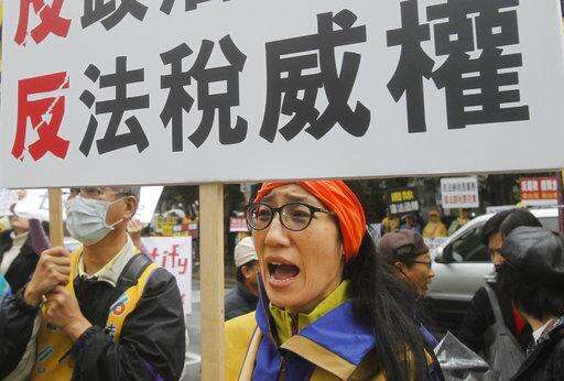 TAIPEI, Taiwan (AP) - Thousands of Taiwanese, taking a page from France's yellow vest movement, protested Thursday for the third time in a week to demand lower taxes and the fair handling of tax disputes.